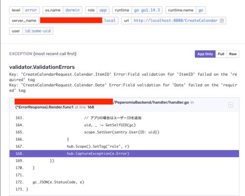 GAEのエラーは、デフォルトでGCPのロギングに出力されますが、ずっと追い辛いと思っていたのでsentry-go導入してエラー監視できるようにしてみました。 github.com Pull Request github.com 実装 Sentryはアプリのエラー監視でも使用していますがGo言語もサ…