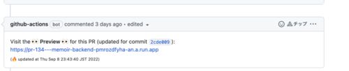 GCP固有の処理などローカル環境では検証できない機能が増えてきたので、PR毎にCloud Runをデプロイできるように修正した。 PR github.com 参考記事 zenn.dev cloud.google.com 実装 Cloud Runはtagを設定することで、リビジョンのURLが設定され個別にアクセ…